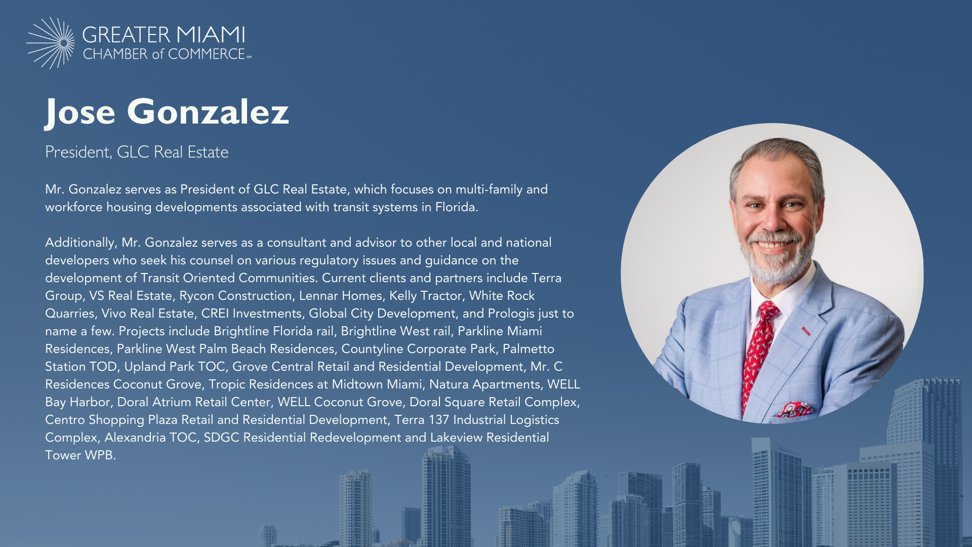 Engage with a variety of professionals including transportation leaders, developers, architects, general contractors, brokers, investors, government leaders, lenders, attorneys, engineers, and the general business community leaders who are shaping South Florida real estate and transportation industries.