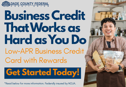 Take your business further with the DCFCU Business Credit Card. Enjoy generous credit limits up to $50,000 and the flexibility to manage everyday expenses or support business growth. Earn one reward point for every dollar spent, transfer balances with ease, and save more with no annual fee. Visit dcfcu.org for more information. Federally insured by NCUA.